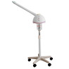 Ozone steamer of functional and simple design. It is equipped with a pivoting arm and a rotating head with an aromatic oil receptacle. It includes a herbs container in the water deposit. Adjustable in height and stable base with wheels for easy movement.